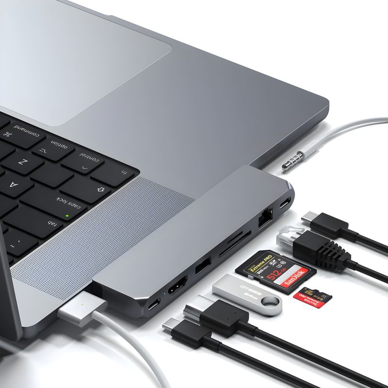 Convierte tu puerto USB-C en un hub multipuerto 7 en 1 con el Adaptador VTA, ideal para conectar dispositivos como discos duros, teclados, ratones, tarjetas SD/TF, red RJ45 y pantallas HDMI. Su diseño compacto y ligero, fabricado en aleación de aluminio de alta calidad, lo hace perfecto para uso en casa, oficina o viajes.