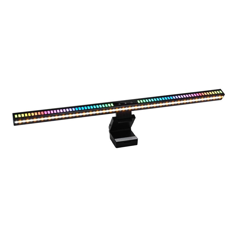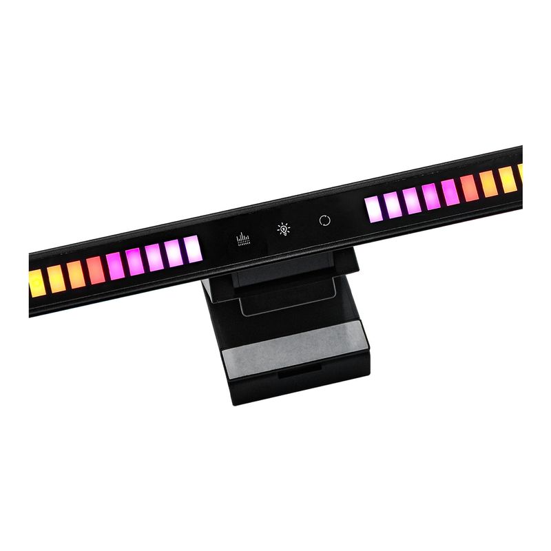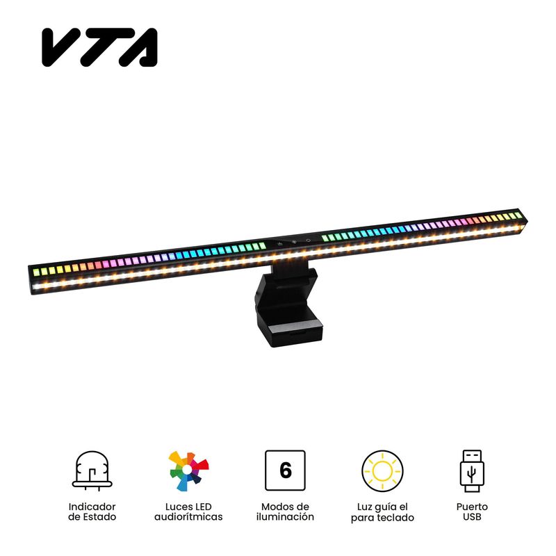 Mejora tu experiencia de juego y streaming con la Barra de Luz RGB para Monitor Gaming VTA. Diseñada para iluminar tu espacio de grabación o transmisión en vivo, cuenta con 6 modos de iluminación ajustables y función de luz audio rítmica que sincroniza los efectos con el sonido. Su gancho de agarre ajustable se adapta a distintos grosores de monitor, mientras que su luz inferior complementaria proporciona iluminación adicional en el escritorio. Con un diseño compacto en color negro, es de fácil instalación y bajo consumo de energía. ¡Lleva tu setup al siguiente nivel!