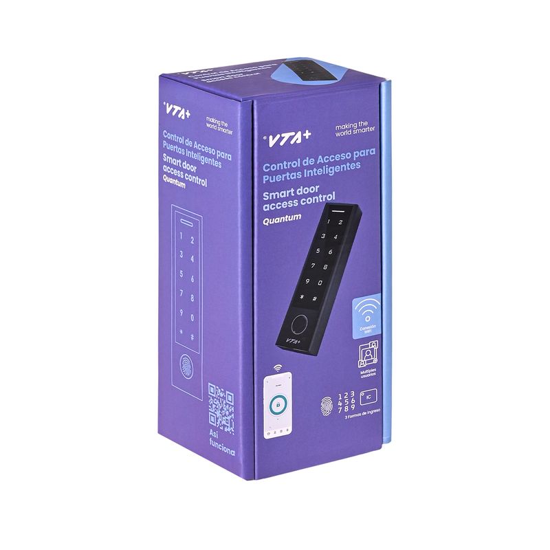 El Control de Acceso Inteligente VTA+ Quantum permite gestionar la entrada a puertas o zonas restringidas de forma segura y práctica. Dependiendo de su configuración, puede administrar diferentes métodos de acceso (como tarjeta, clave o biometría) y registrar eventos de ingreso. Es ideal para oficinas, negocios o espacios residenciales que requieren control organizado de entradas y salidas.